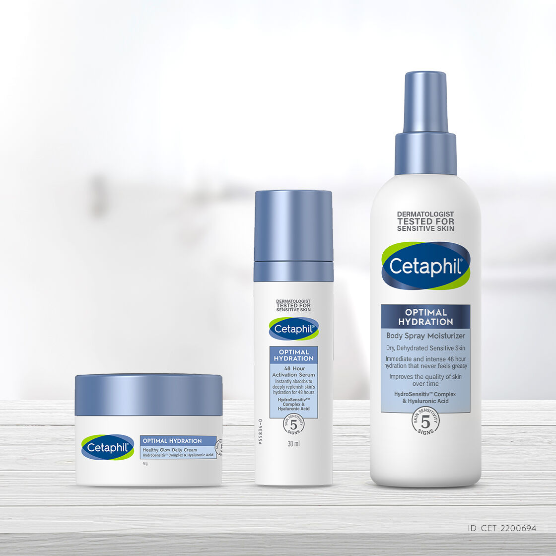Lantas, bagaimana caranya menjaga kulit tetap lembap dan terhidrasi di tengah kesibukan sehari-hari? Kamu bisa menggunakan rangkaian Cetaphil Optimal Hydration yang dapat menghidrasi kulit secara optimal berkat formula HydroSensitivTM Complex dari Cetaphil, yaitu kombinasi blue daisy dan bahan-bahan menghidrasi seperti Niacinamide dan Hyaluronic Acid. Tidak hanya itu, rangkaiannya juga membantu melawan 5 tanda kulit sensitif yang terdiri dari lapisan kelembapan terganggu, dehidrasi, kasar, kaku, dan tidak nyaman.